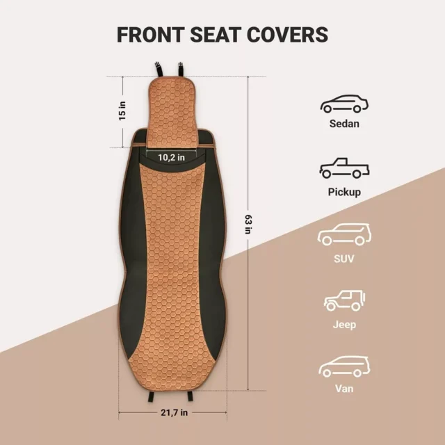 These car covers are designed to fit most seats that match the specified measurements. Be sure to compare them to your vehicle’s seat measurements before purchasing. When folded, the set won’t take up much space in your garage or closet.
