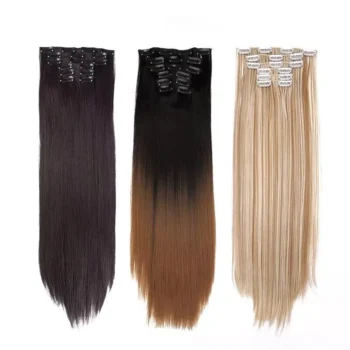 22-Inch Clip-On Synthetic Hair Extensions – Ombre, Curly, and Straight Styles with Heat-Resistant Fibers