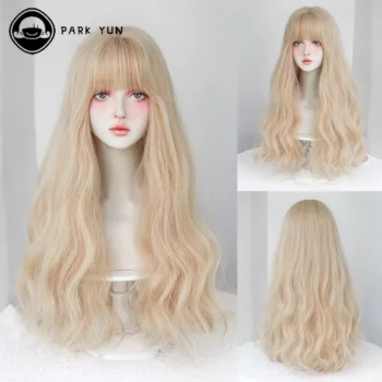 Blonde Long Wave Wig with Bangs – Heat Resistant Synthetic Hair for Cosplay, Lolita Fashion, and Daily Wear