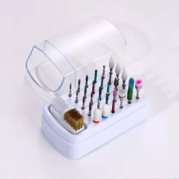 Compact 30-Hole Nail Drill Bit Organizer with Dustproof Cover and Cleaning Brush
