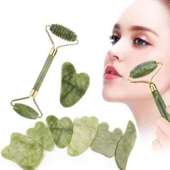 Natural Jade Facial Roller & Gua Sha Set – Anti-Aging Skin Rejuvenation Kit