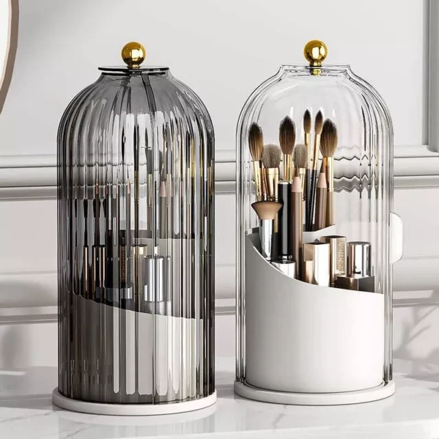 Our Luxury Rotating Makeup Organizer stands out for its multifunctional design. It’s not just for makeup brushes and lipsticks; it’s a versatile solution for all your beauty tools. Whether you’re a makeup enthusiast or a professional, this organizer will streamline your beauty process, making it quicker and more enjoyable. The space-saving aspect also means you can keep your counters clutter-free, with more room for creativity.